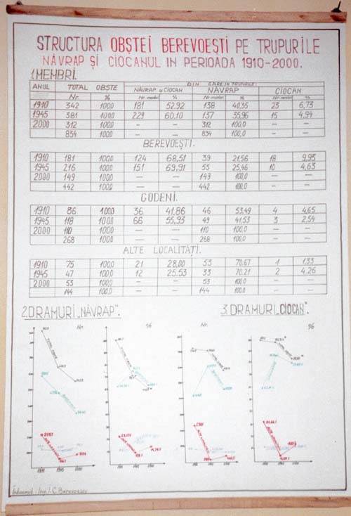 FILE DE ISTORIE BEREVOESTEANA Contributii la studiul Obstei Mosnenilor Berevoesti pe in perioada 1910-2ooo de Ion C Berevoescu Perioada analizata se caracterizeaza prin mutatii esentiale in structura obstei- mutatii calitative si cantitative de o deosebita importanta perivind procesul de exploatarea patrimoniului.Legislatia silvica din anii 1940 si 1945 a stabilit cadrul juridic de functionare al obstei si al tuturor formelor asociative de acest fel din tara. Retragerea din patrimoniul devalmas ,a unor proprietari care au cumulat un numar mare de drepturi ipotetice(dramuri)cat si disocierea drepturilor initiale ale majoritatii membrilor, ca urmare a cresterii naturale a numarului de mostenitori ai acestora, sunt principalele cauze care au generat aceste mutatii. Legea silvica din anul 1910 a determinat cel mai important proces de trecere de la obstea traditionala , veche,- o obste in care drepturile codevalmasilor erau certificate,in parte,prin acte autentice, dar majoritatea acestora isi transmiteau drepturile pe cale succesorala verbala a impus o actiune de amploare de stabilirea genealogiilor proprietarilor din obste, obste care cuprindea intreaga comunitate din satul Berevoesti-Pamanteni.Actele analizate de Judecatoria rurala Domnesti au permis stabilirea unui vast material genealogic, evidentiat, de altfel, si in monografia Comunei Berevoesti, editia 1996, autor Ion Hera Bucur.Schitele genealogice , cu trimiteri pana la nivelul anilor 1506- anul atestarii documentare asatului Berivoesti constituie o baza de o deosebita importanta pentru actualizarea acestora cu descendentii secolului XX. In cercetarea noastra, am incercat sa aprofundam si sa cuantificam procesul de faramitare al obstei si efectele acestui proces asupra activitatii sale viitoare.Procesul de faramitarea obstei a fost sesizat si de V.V.Caramelea in monografia "Obstea Mosnenilor Berivoesti " editia 1945, lucrare care ofera un tablou general al evolutiei obstei de la inceputuri pana in anul 1945. Am urmarit evolutia componentei numerice pe total obste , cat si pe apartenenta codevalmasilor la grupul satesc localnic si al"strainasilor"din alte localitati limitrofe, dinamica drepturilor ce revin pe o familie (autor) , corespondenta acestora in drepturi reale, cat si influienta iesirilor din patrimoniul obstei. In cele ce urmeaza redam sintetic cele constatate: DIMINUAREA PATRIMONIULUI OBSTEI